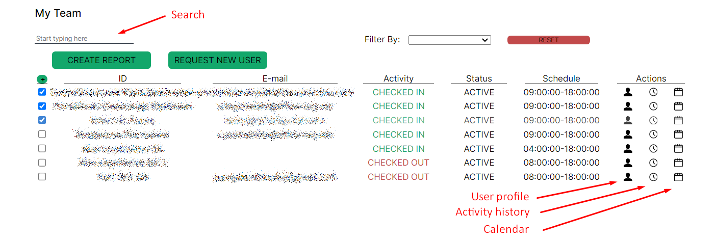 In the My Team section, the manager can view the most complete information on the team, namely these elements: