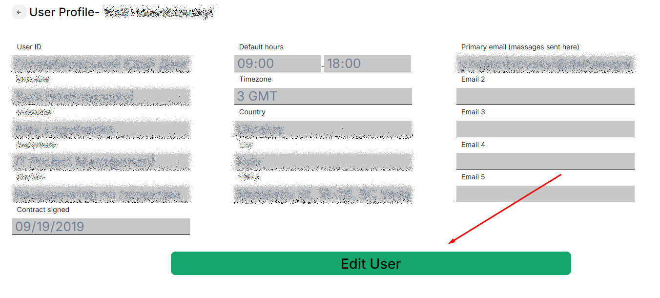 The manager can see all user information entered into the database. If the information in the profile is incorrect, you need to contact support (email: support.team@a-tracker.net), or the manager can make corrections independently.