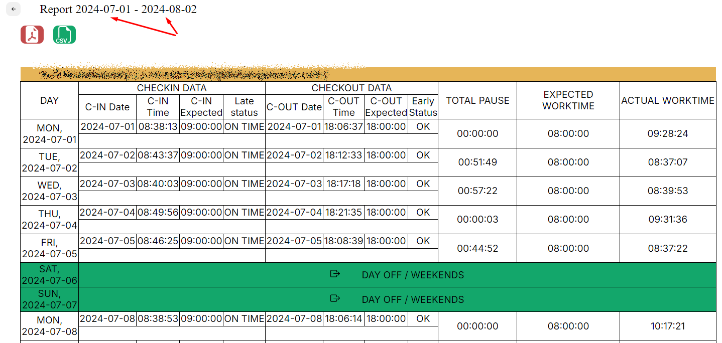 В следующем окне мы получаем репорт по выбранным пользователям за указанный период.