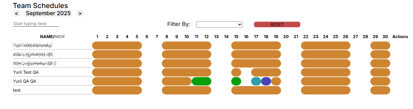 Раздел My Team Schedules предназначен для просмотра и контроля график занятости всей команды.