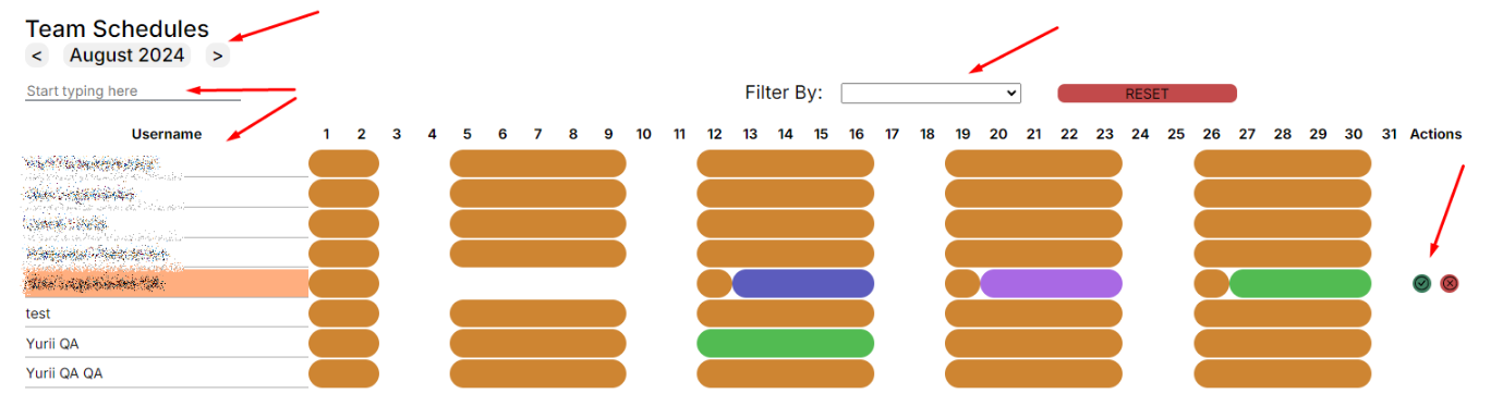 - Actions — отображение действий пользователя, ожидающего подтверждения внесения изменений в график занятости.