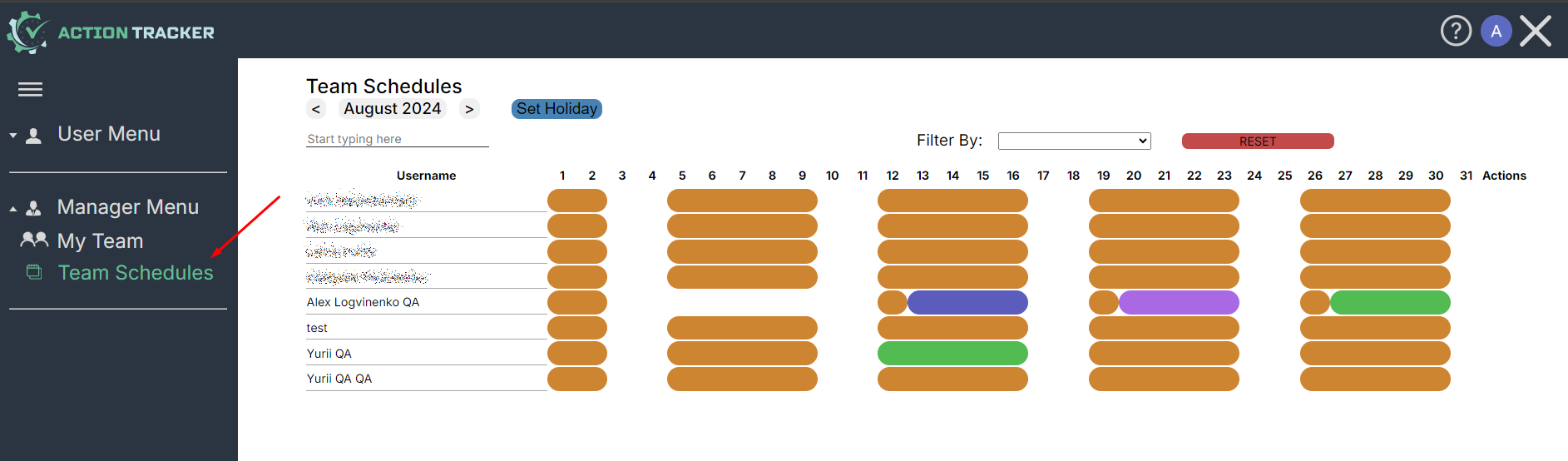 Раздел My Team Schedules предназначен для просмотра и контроля график занятости всей команды.