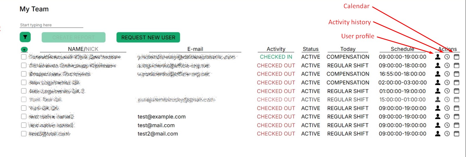 У розділі My team керівник може переглянути найбільш повну інформацію про склад команди, а саме такі елементи: