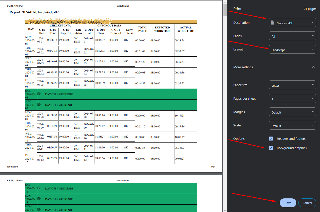 У наступному вікні ми отримуємо репорт про обраних користувачів за вказаний період.