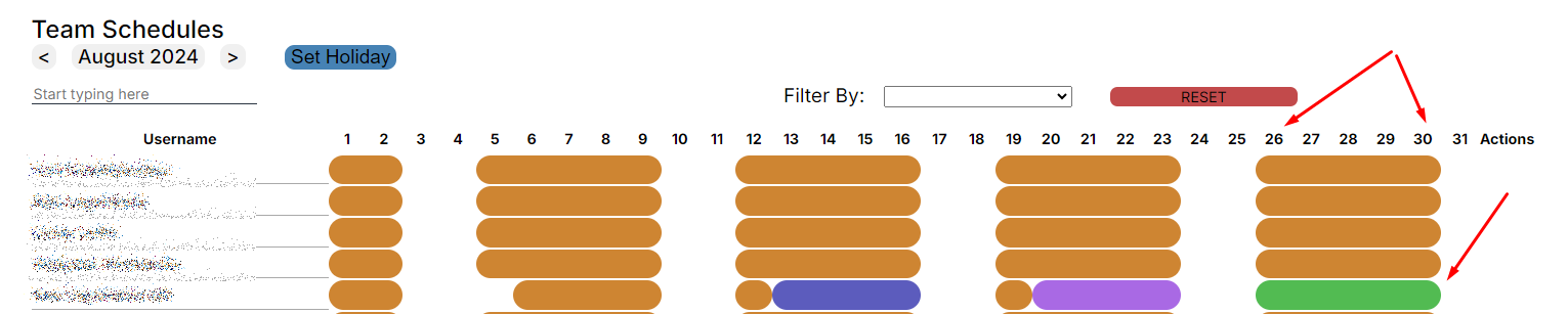 Ми перейдемо до розділу “My schedule” вибраного користувача. Виділяючі потрібні дати курсором миші, можна перейти до редагування графіку зайнятості: