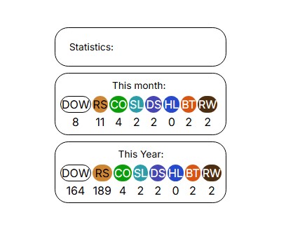 В цьому меню представлена статистика за актуальний обраний місяць та календарний рік