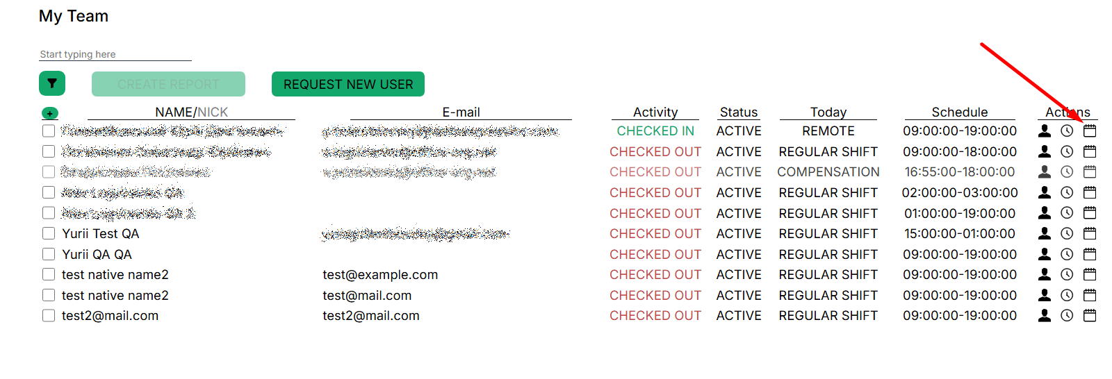 Детальніше про редагування графіка роботи користувача описано в розділі "My team Schedule".