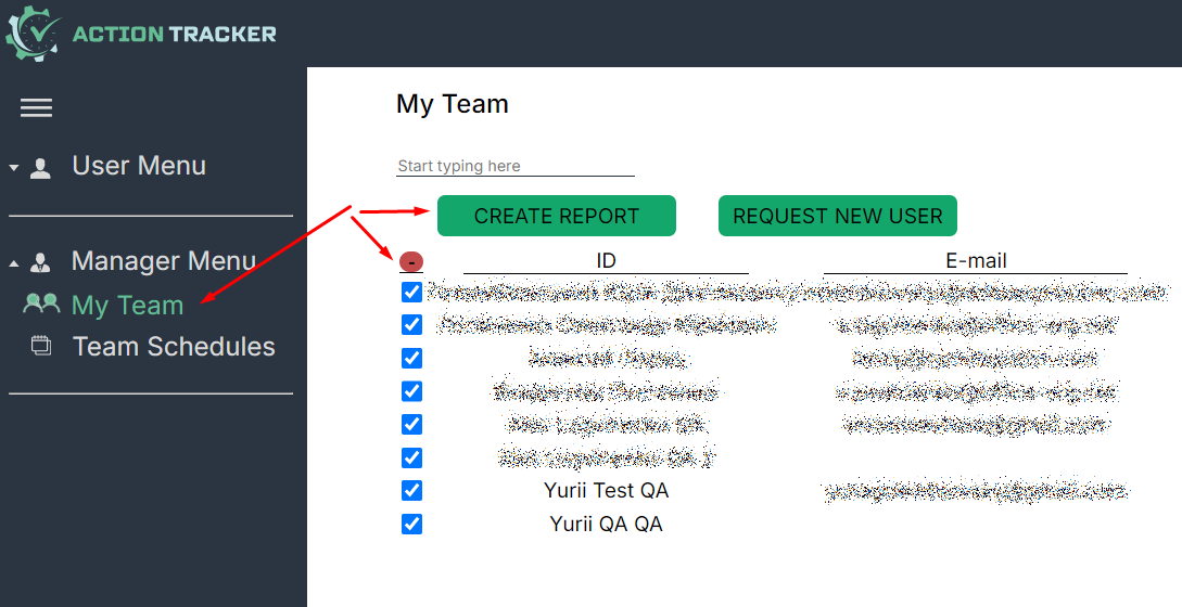 Система Action Tracker надає функціонал, який дозволяє генерувати звіти активності контрактників в команді за період, та завантажувати в форматі pdf та csv.
